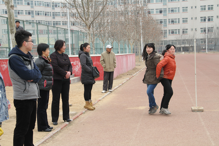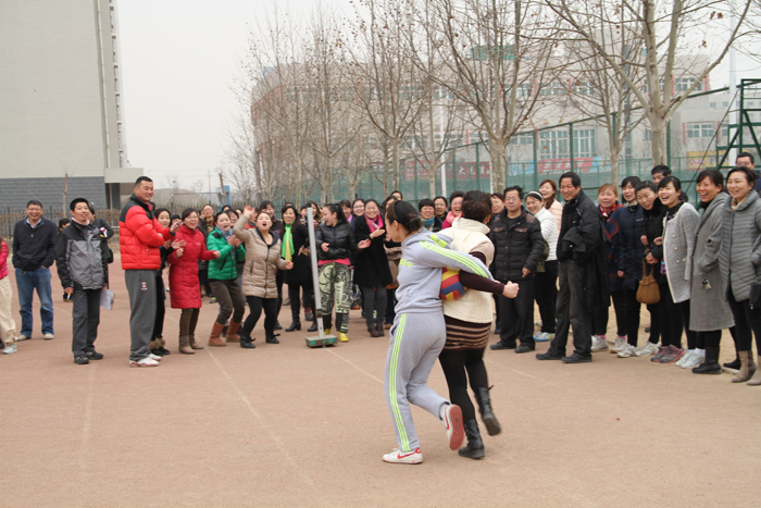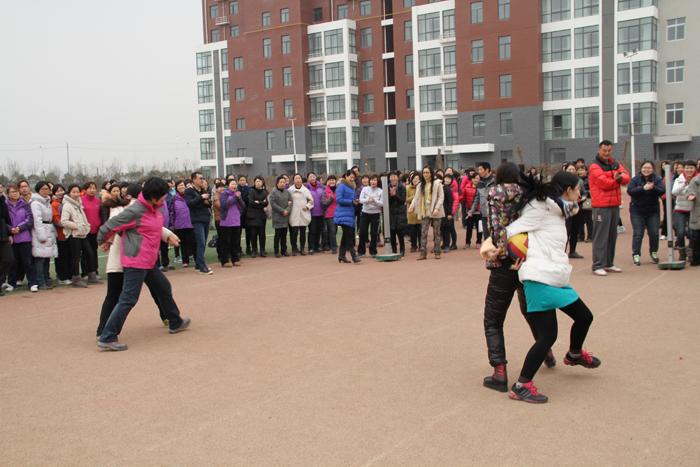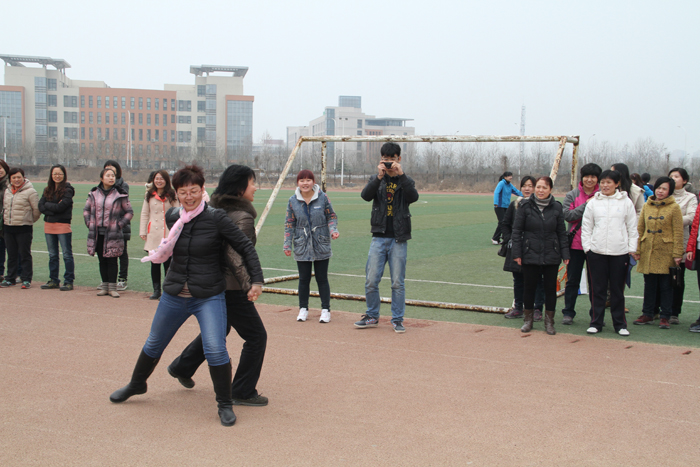 在全国“两会”召开之际,我们迎来了2014年“三八国际劳动妇女节”。3月6日中午,院工会女工部在学院田径场组织广大女教工开展了双人挤球跑比赛。院党委书记王长钦,副院长彭志宏、肖珑,院工会主席邵芙蓉亲临现场。