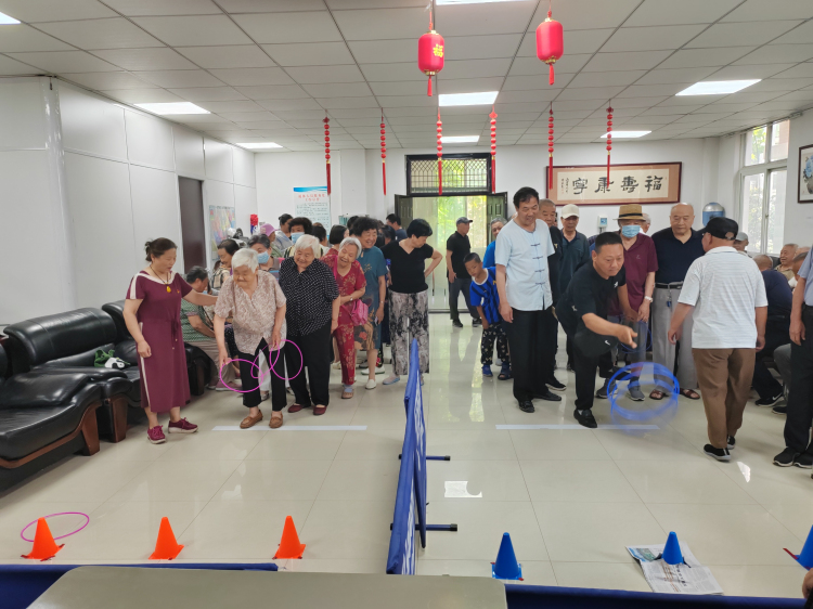 为丰富退休教职工的精神文化生活,6月18日上午在退休人员活动室二楼,离退休人员服务处、关工委举办了欢庆“七一”趣味活动——“套圈比赛”。准备过程中,“五老”骨干积极献计献策,从场地布置、安全多方面考虑,为比赛顺利进行发挥了作用。