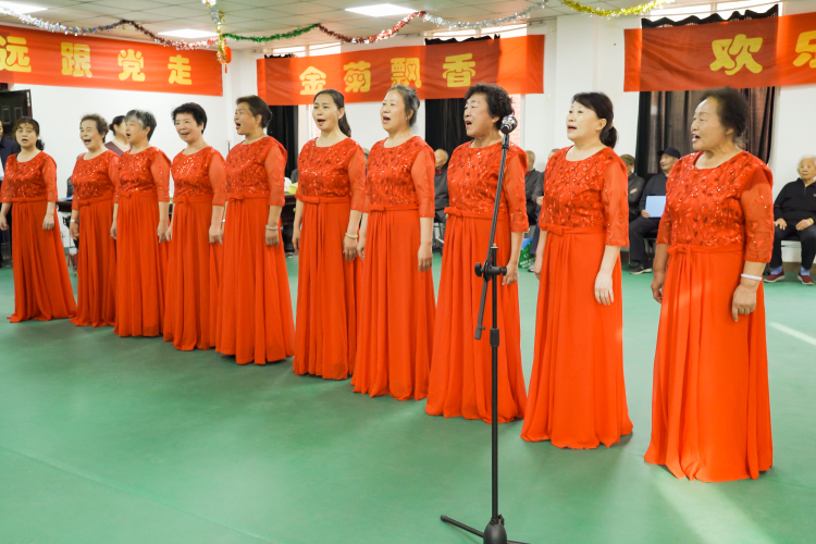 首先,夏喜利主席代表学院发表了热情洋溢的讲话,介绍了学院取得的成就和发展前景,并祝福全体退休教职工身体健康,开心快乐。然后文艺汇演活动在《我们走在大路上》的嘹亮乐曲声中拉开了帷幕;情绪饱满、声音洪亮的三句半《迎重阳》让人开怀大笑,表达了老而有为、爱老敬老传统精神;欢乐活泼的歌伴舞、气质优雅的老年时装秀、诙谐幽默的快板书、娓娓动听的小合唱、整齐洪亮的大合唱、节奏劲爆的锅庄舞、欢快的打腰鼓等表演节目,精彩不断,全场喝彩声、掌声阵阵,欢笑、快乐洋溢在每个人的脸上。最后在全体人员合唱的《没有共产党就没有新中国》的激情澎湃嘹亮歌声中结束。