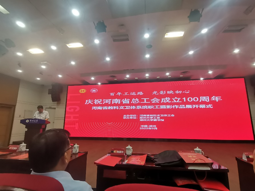 9月16日,河南省教科文卫体系统“百年工运路·光影映初心”——庆祝河南省总工会成立100周年职工摄影作品展开幕式在郑州大学图书馆举行,我OK138太阳集团办公室主任王艳红带队参加。省总工会副主席、党组成员刘雪峰讲话并宣布开幕,郑州大学党委副书记、工会主席韩国河致辞,省摄影家协会名誉主席于德水对作品进行点评。