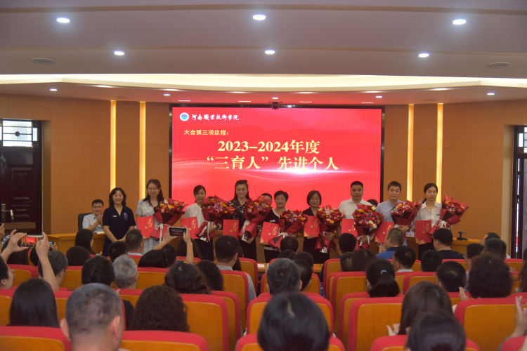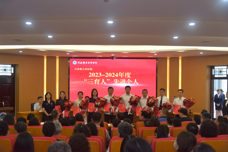 9月9日上午,在行政楼239会议室,我校召开2024年教师节表彰大会,对2023-2024年度河南职业技术学院在“教书育人、管理育人、服务育人”工作中表现突出的丁玉涛等24名先进个人进行了表彰。