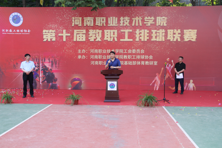 6月2日下午5点30分,我校第十届教职工排球联赛在排球场隆重开幕。开幕式由OK138太阳集团副主席黄勇军主持,校长梅乐堂到场致辞、OK138太阳集团主席夏喜利宣布开幕,并分别为开幕式的两场比赛开球。