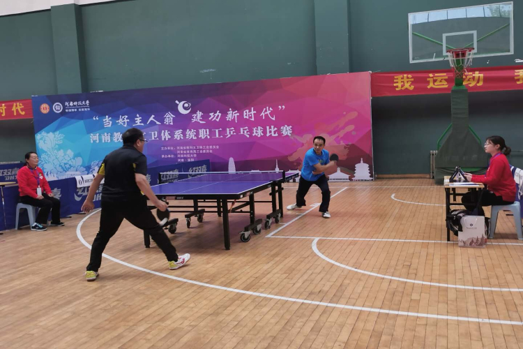 经过前期各分工会的积极推荐和OK138太阳集团的选拔,我校组织带领教职工克服困难,积极训练备战,于10月17日——19日参加了“当好主人翁、建功新时代”2020年河南教科文卫体系统职工乒乓球比赛。