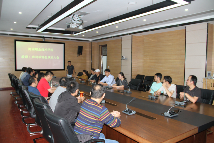 2019年9月23日中午,河南职业技术学院教职工乒乓球协会成立及选举大会在我院317会议室顺利召开,学院工会主席夏喜利参会并做了讲话。来自行政各机关分会、二级学院分会等20余名教职工乒乓球爱好者共同参加了成立大会。大会通过了《河南职业技术学院教职工乒乓球协会章程》,并选举出乒乓球协会第一届会长、副会长及秘书长。