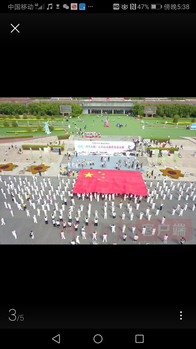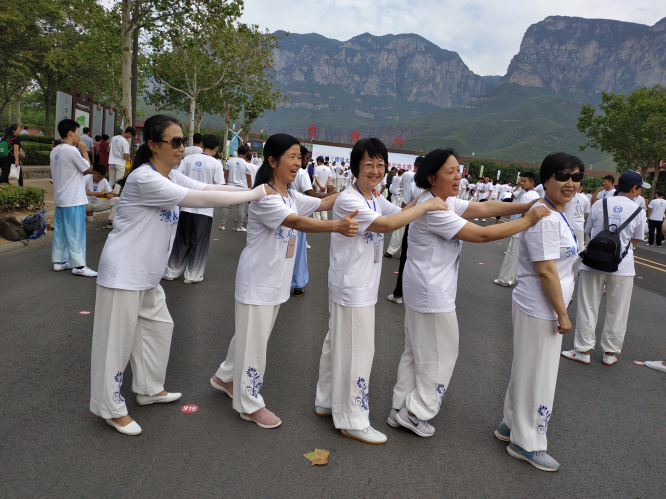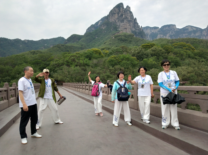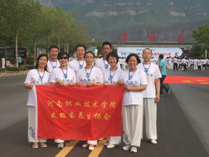 我院太极协会应邀观摩,2019年6月15号晨5时,我校张北,王文,王智洲,张文丰,葛守峰,袁世先,邓小君,杜馨,李卫红,张文平等十人,与其它高校及社会各界太极拳爱好者一行53人赴云台上参加"豫见太极"千人大赛。