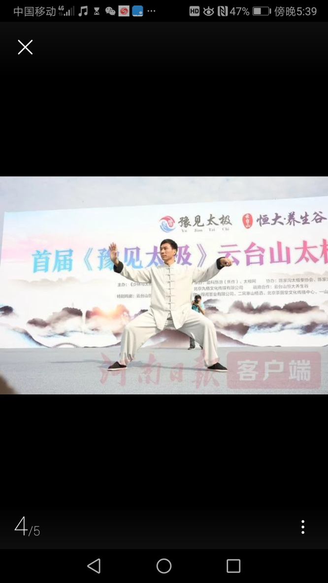 6月15日到18日,首届"豫见太极"交流会在云台山开幕,来自世界各地千名拳友齐聚云台山切磋交流!大赛有《少林与太极》杂志社、师懂会联合主办,盈科美辰国际旅行社有限公司焦作分社、天极网承办,焦作云台山景区、陈家沟太极拳协会、陈家沟国际太极院协办。