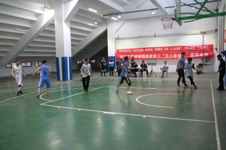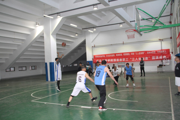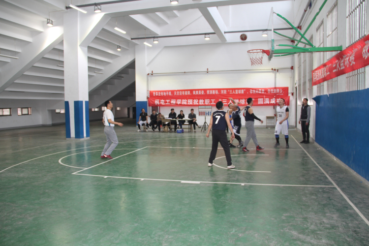 4月3日下午,我院首届教职工三人制篮球赛在我院田径场室内篮球馆圆满结束。这次比赛共有12个分工会篮球代表队、共60人参赛。