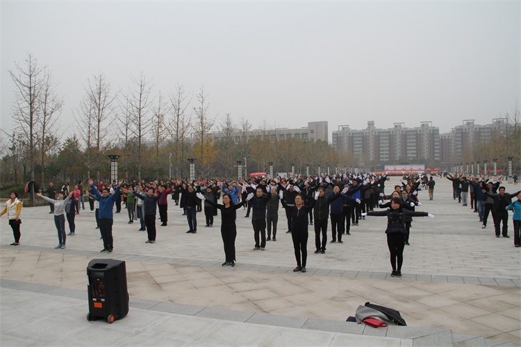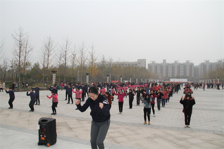 11月15日下午,院工会在图书馆前广场举办了第九套广播体操活动,工会主席夏喜利同志亲自参与,17个分工会共648名教职工参加了这次活动。