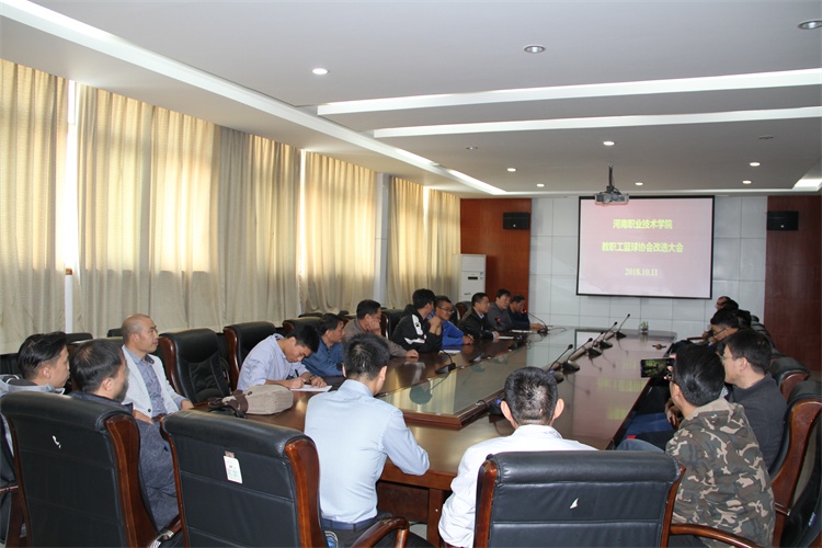 2018年10月11日中午,我院首个教职工协会暨篮球协会改选大会在行政楼332会议室隆重召开。院工会副主席赵燕军同志参会并讲话。会议由上届秘书长教务处长李小强同志主持,共有24名篮球协会会员参加。