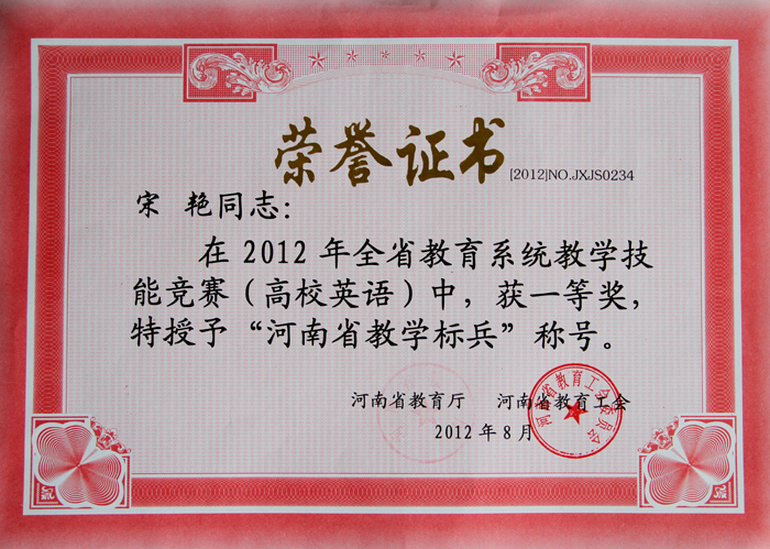 近日,由省教育厅、省教育工会联合举办的“河南省教育系统2012年度教学技能竞赛”揭晓评选结果,我院参赛的9位教师均取得佳绩,其中一等奖1人、二等奖5人、三等奖3人。