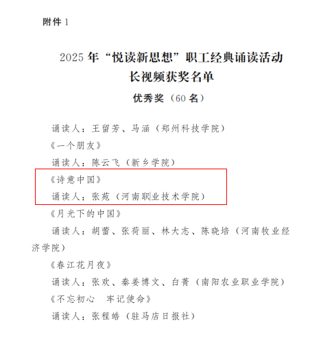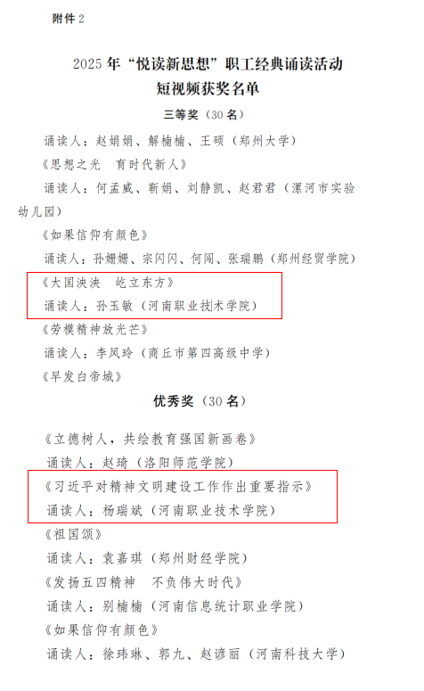 近日,河南省教科文卫体工会2025年“悦读新思想”经典诵读活动评选结果揭晓,我校表现优异,斩获多项荣誉。