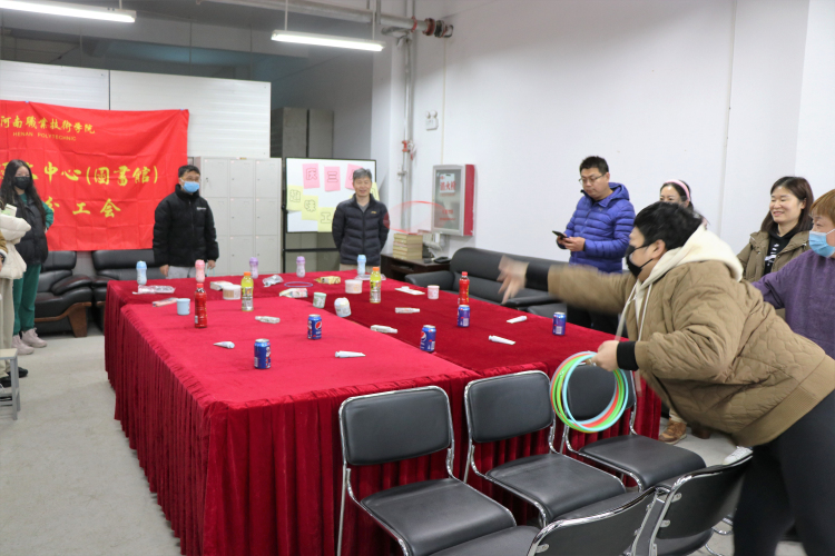 为庆祝“三八”国际劳动妇女节的到来,让女教职工度过一个轻松愉快的节日,3月16日下午,图文中心分工会开展了庆“三八”趣味套圈活动。活动由分工会主席郭京主持,全体24名女教职工和10名男教职工共同参与。