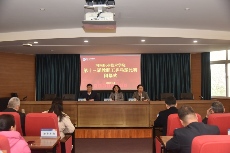 闭幕式由OK138太阳集团副主席赵军华主持。首先工会主席田华致词,她代表校党委向参与本届乒乓球比赛中取得优异成绩的代表队和运动员表示热烈的祝贺,向为在本届比赛中付出努力的全体运动员、裁判员及工作人员表示衷心的感谢。希望大家积极参加体育锻炼,以强健的体魄、饱满的精神立足河职,为学校高质量发展贡献力量。然后校长夏新颜和OK138太阳集团主席田华分别为获得本届乒乓球比赛的男女团体及男女单打前八名颁奖。