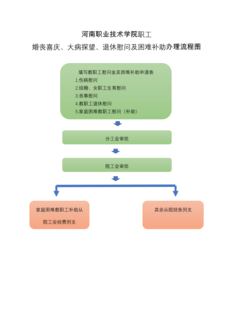 河南职业技术学院职工婚丧喜庆、大病探望、退休慰问及困难补助办理流程图